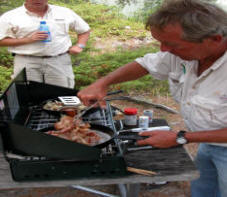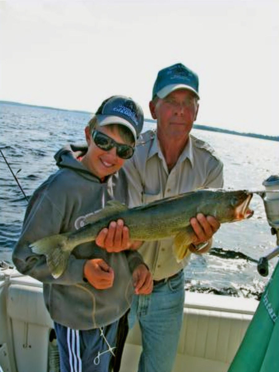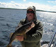 Gator fishes exclusively on 70 mile long Rainy Lake (10 miles from International Falls, Minnesota) in a 24' Hydra Sport powered by a 225 hp Suzuki outboard. He has the capacity to handle up to six people, which makes for a great family outing. He can supply all equipment, rods and reels, and tackle at no extra cost to you. If you aren't a professional fisherman, Gator will teach you the techniques necessary to catch trophy walleyes or small mouth bass. Within minutes you will know how to fish with the best of them!