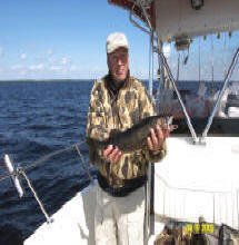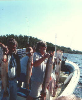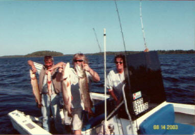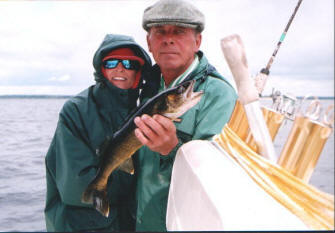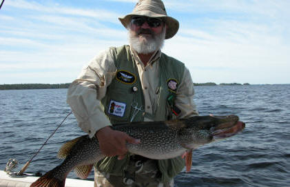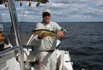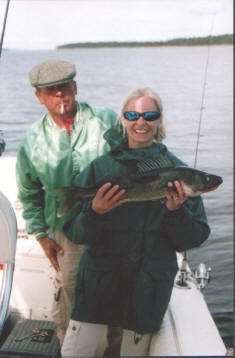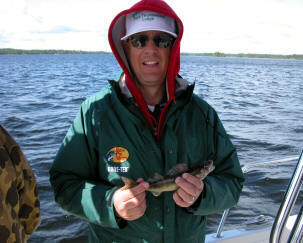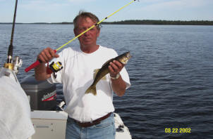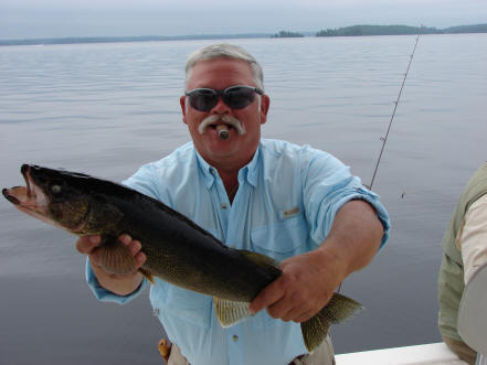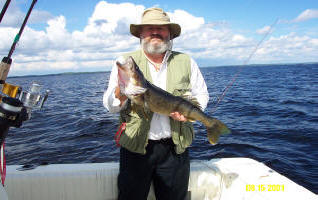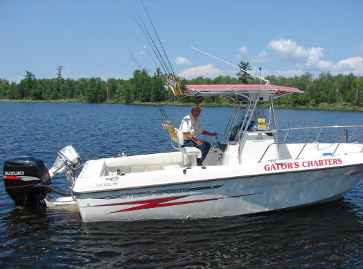 Gator fishes exclusively on 70 mile long Rainy Lake (10 miles from International Falls, Minnesota) in a 24' Hydra Sport powered by a 225 hp Suzuki outboard. He has the capacity to handle up to six people, which makes for a great family outing. He can supply all equipment, rods and reels, and tackle at no extra cost to you. If you aren't a professional fisherman, Gator will teach you the techniques necessary to catch trophy walleyes or small mouth bass. Within minutes you will know how to fish with the best of them!